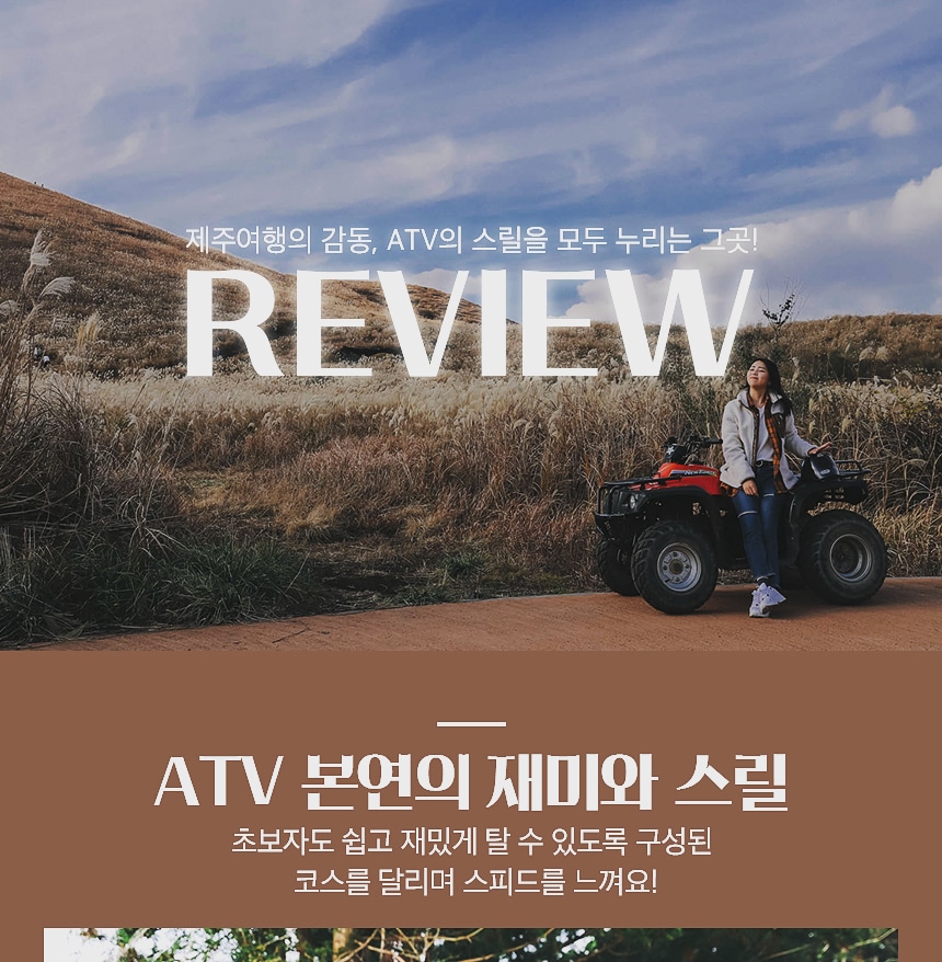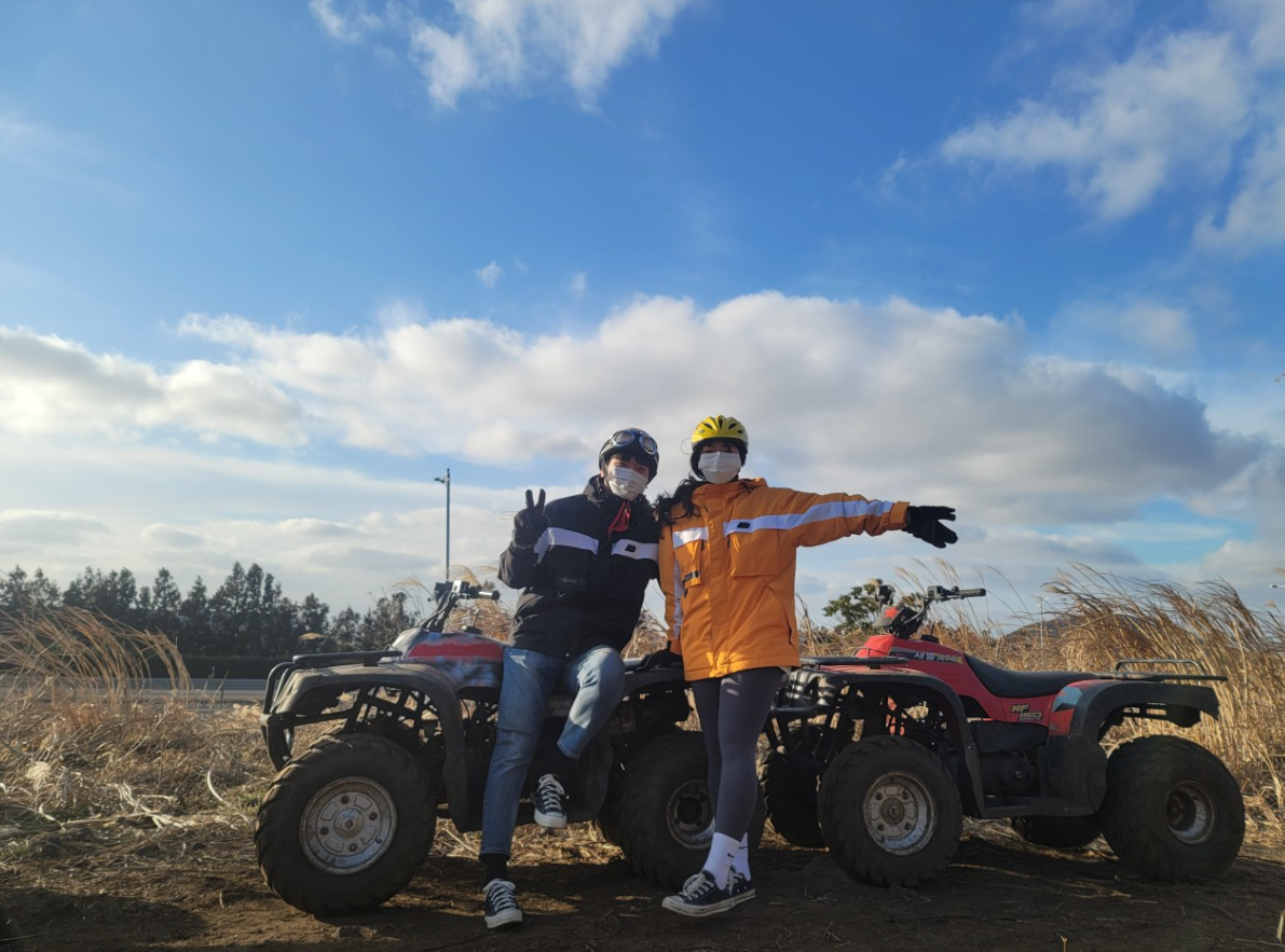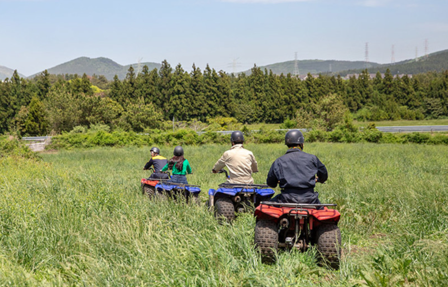 멋진 제주도 배경으로 즐거운 ATV 체험을 직접 즐길 수 있습니다.