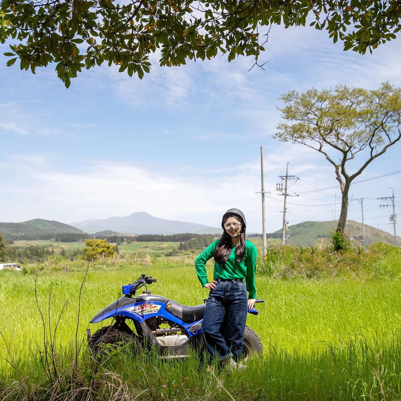 멋진 제주도 배경으로 즐거운 ATV 체험을 직접 즐길 수 있습니다.